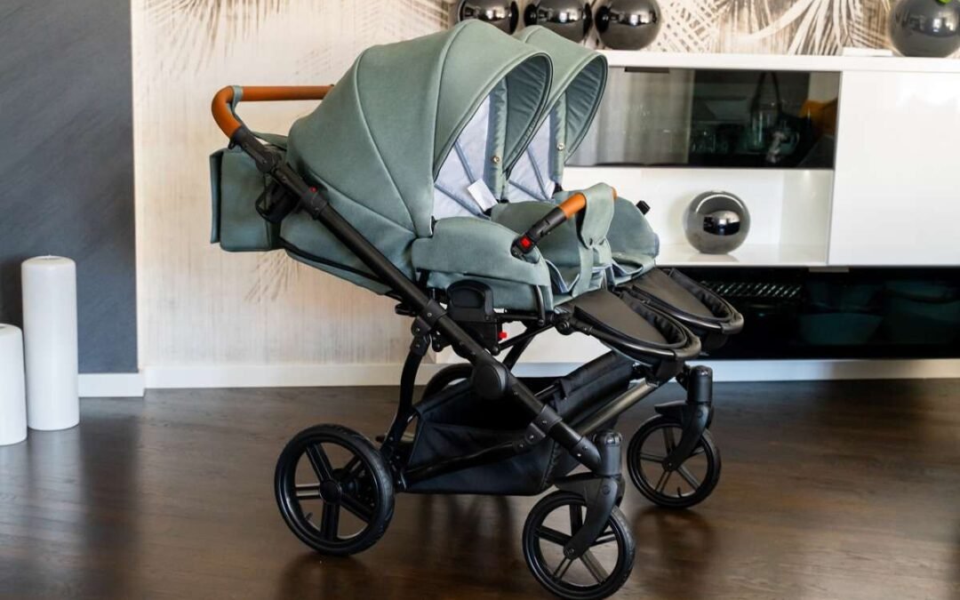 poussette double jumeaux côte à côte couleur vert d’eau nacelles pliantes (4)