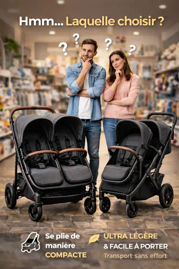 Pour comparer correctement les poussettes doubles, il est important d’analyser deux éléments principaux :