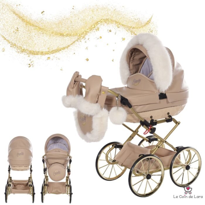 Cette poussette miniature ressemble à une véritable poussette avec toutes les fonctions nécessaires pour jouer aux petits parents. Sa finition est soignée avec un revêtement en similicuir, un tissu pailleté imperméable et des matériaux de haute qualité.