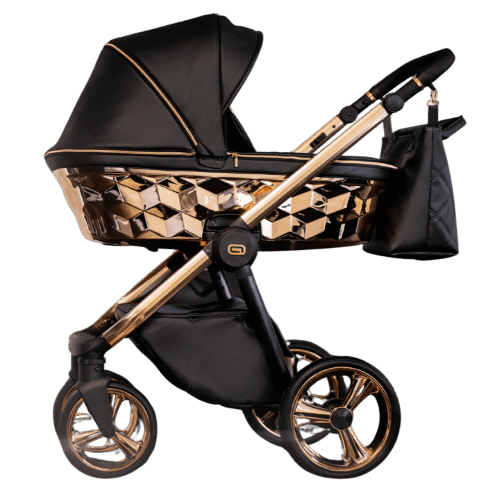 A alcofa 3D revestida a cobre confere ao carrinho de bebé um aspeto único